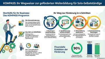 Die KOMPASS-Förderung („Kompakte Hilfe für Solo-Selbstständige“) unterstützt Sie dabei, Ihr Wissen gezielt auszubauen und Ihr Unternehmen zukunftssicher aufzustellen.
